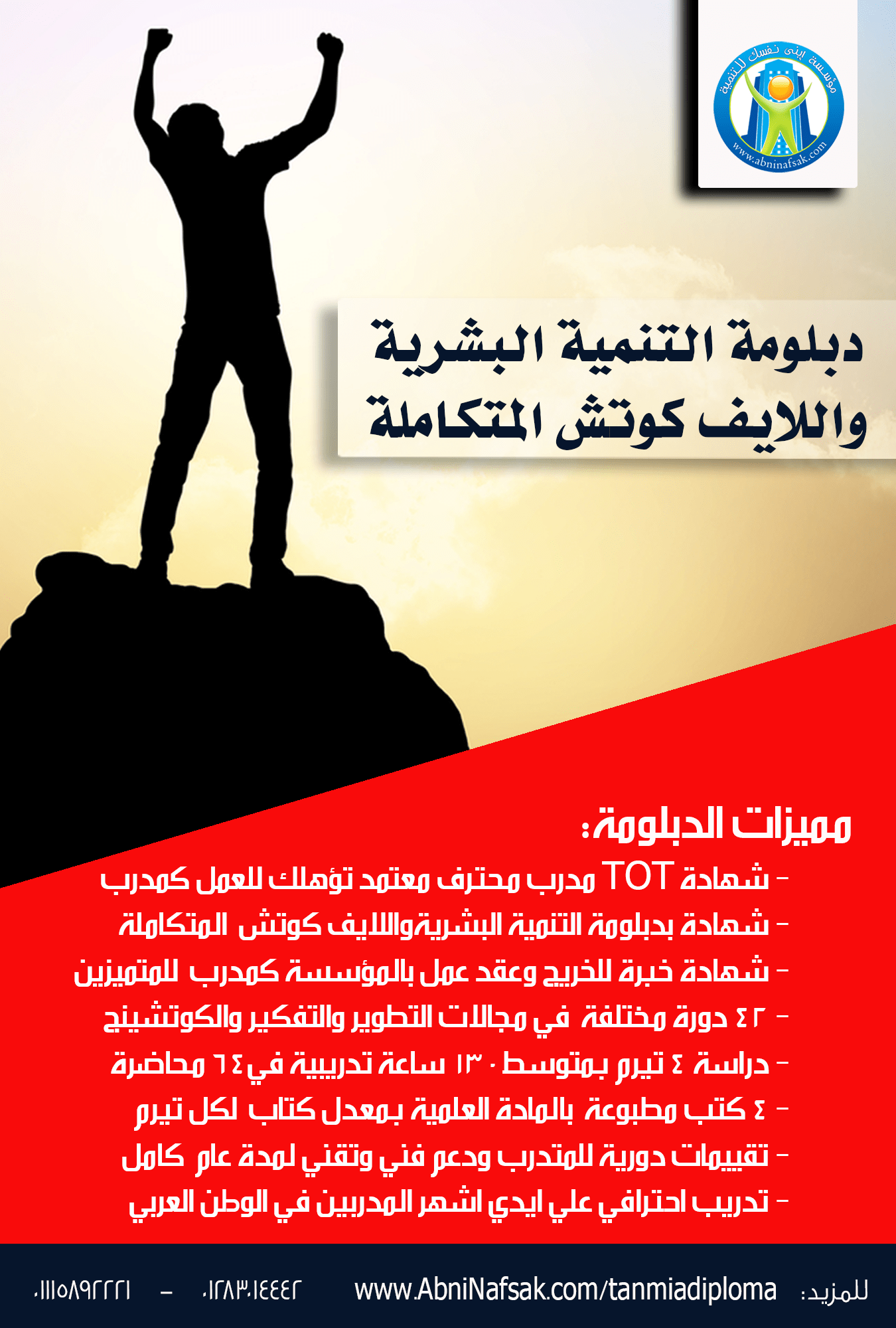 دبلومة التنمية البشرية وLife Coach المتكاملة A to Z diploma ™, لا شك بان هناك توجه عام من قبل الافراد والمؤسسات لدراسة وتطبيق علوم التنمية البشرية وال Life Coach وذلك نظرا لأهميتها في الحياة الشخصية والمهنية والاسرية وكافة مناحي الحياة، وكذلك نظراً ل سهولة تطبيقها وممارستها بدون عناء العلوم البحتة والتنظير فهي خليط من العلوم التطبيقية التي يسهل علي كل شخص ممارستها.